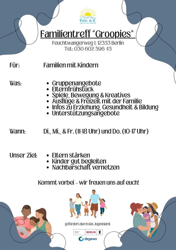- Familien mit Kindern, die im Wohngebiet zwischen Wutzkyallee und Zwickauer Damm sowie hinter dem Rotraut-Richter Platz leben.